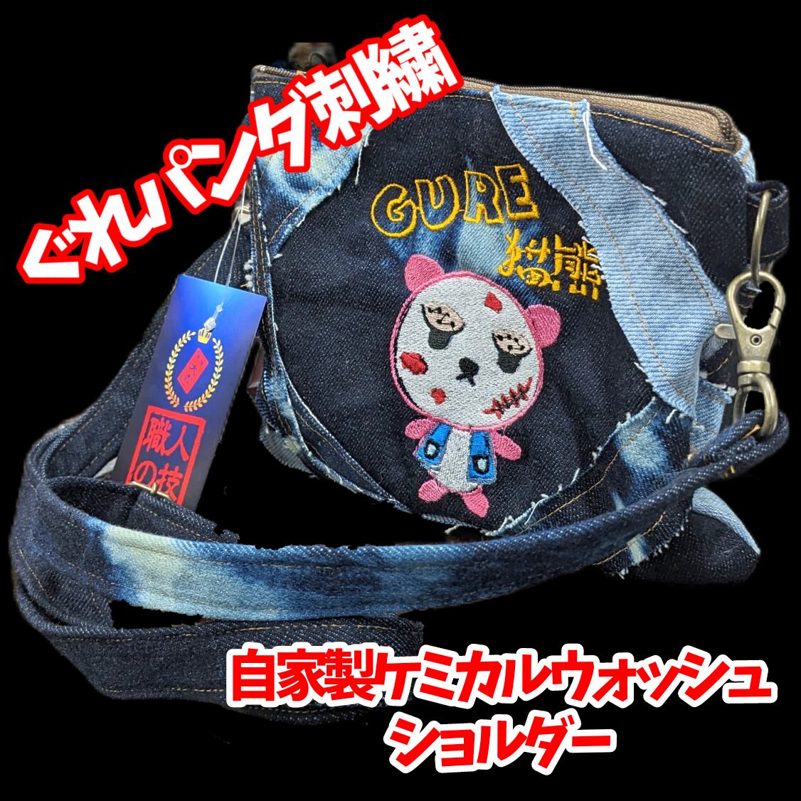 ぐれパンダ刺繍 ピンク デニムショルダーポシェット